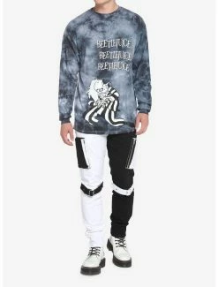 The dead are way more fashionable than the living. Rock these Beetlejuice resort shorts, inspired by your favorite Ghost with the Most! Featuring a solid black and black and white stripe split design, with a toss print of “Beetlejuice,” beetles and sandworms. There are hip pockets and an elasticated waistband with a neon green drawstring. Pair with the matching button-up to complete your ghoulish look!