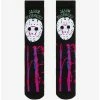 Heading off to Camp Crystal Lake? Better take a long-sleeve tee! This one’s for true Friday the 13th stans. It features The film’s logo on the chest and down one sleeve, with an image of Jason Voorhees with his bloody machete, and text reading “Jason Lives.” The left sleeve features symbols from the film.