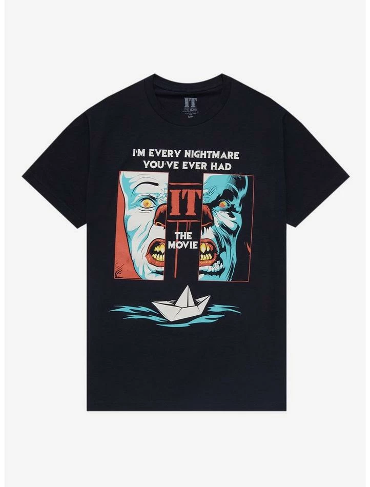 In case you needed reminding that Pennywise from IT is the scariest ever, this tee is here to get your gears turning again. The graphic shows Pennywise’s different, demonic facial expressions, along with the movie title and one of his famous quotes.